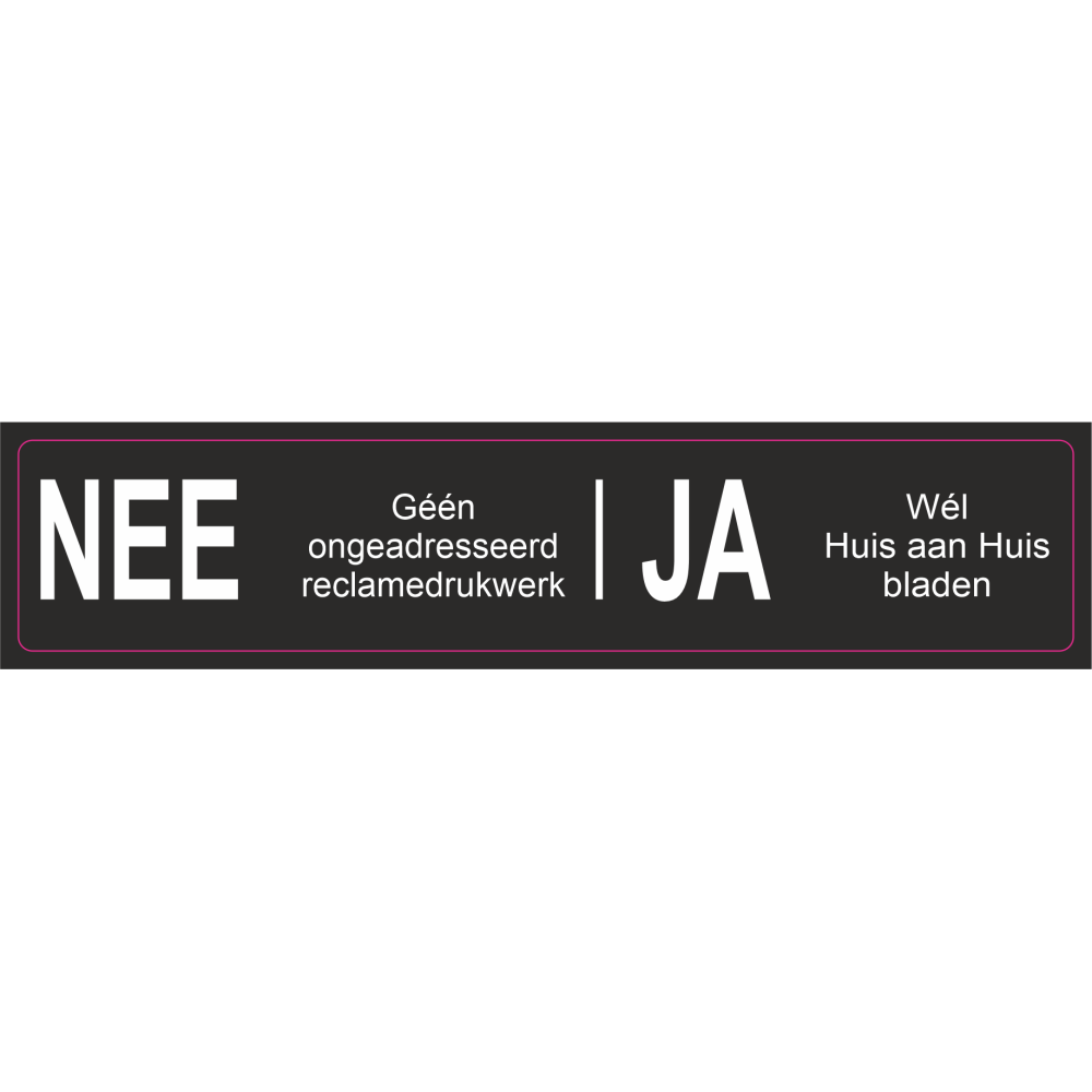 NEE / JA STICKER, ZWARTE UITVOERING MET WITTE LETTERS