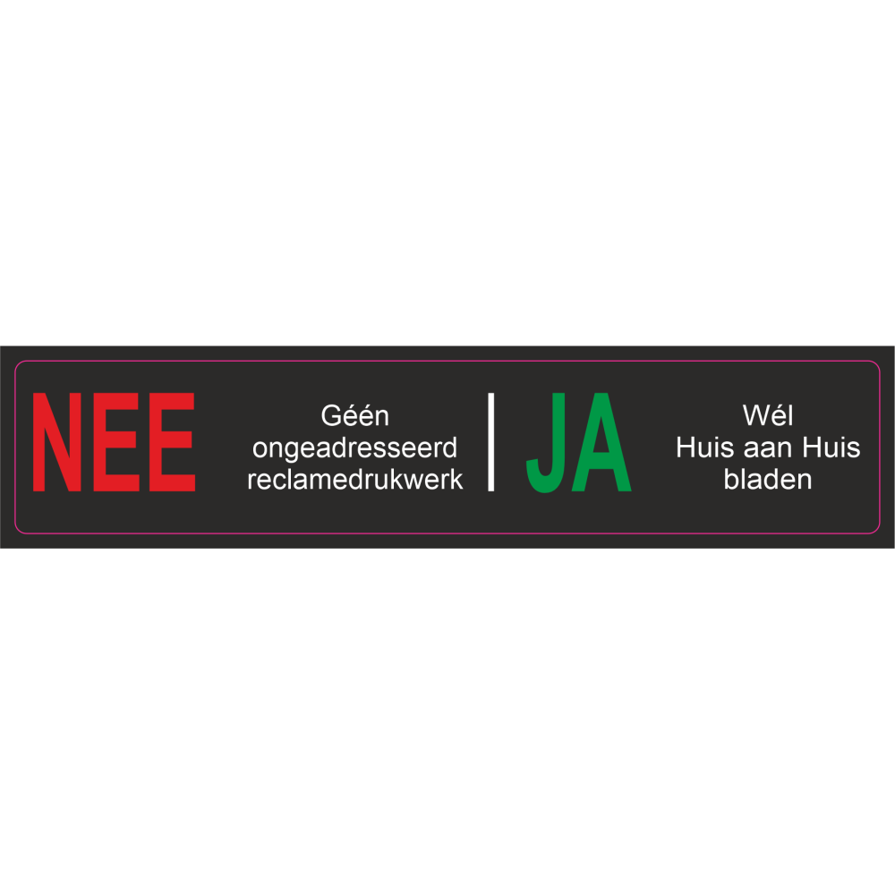 NEE / JA STICKER, ZWARTE UITVOERING MET WITTE LETTERS